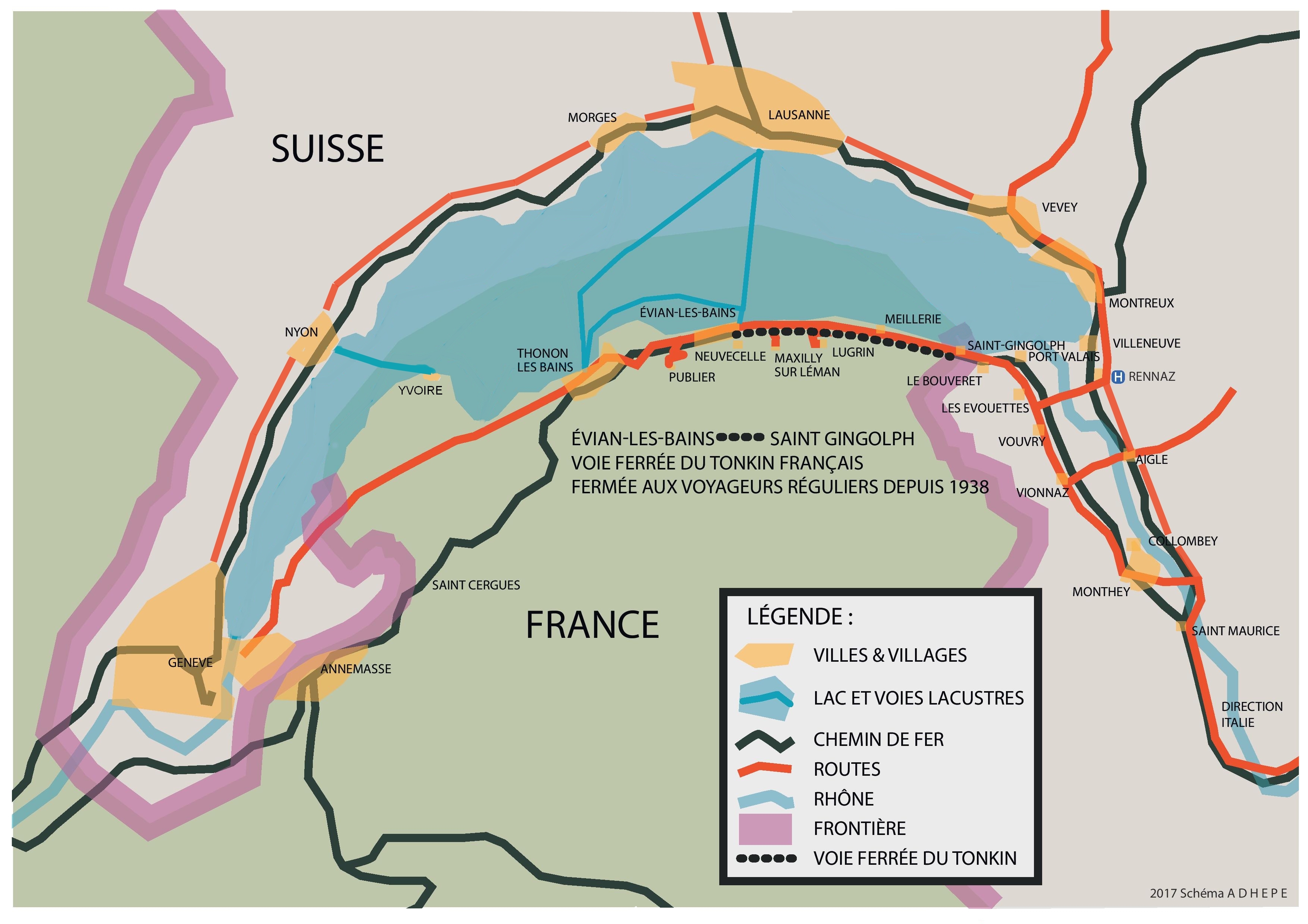 L’éventuelle réouverture de la voie ferrée du Tonkin (F) – Evian/Saint-Gingolph – ne bouclera pas le tour du lac Léman, détour de 70 km.